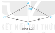 Cho Hình 4.25, biết \(\widehat {DAC} = {60^\circ },AB = AC,DB = DC\). Hãy tính \(\widehat {DAB}\).