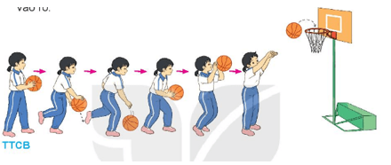 - Cách thực hiện: Đưa bóng về một tay, dẫn bóng đến gàn rổ, dừng lại bắt bóng. Sau đó, chùng gối, duỗi chân, đồng thời dùng sức hai tay ném bóng vào rổ.