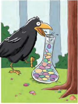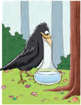 Quạ gắp từng hòn sỏi thả vào bình. Một lát sau, nước từ từ dâng lên gần miệng bình. Quạ tha hồ uống.