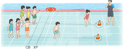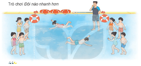 - Bước 3: Khi có hiệu lệnh, em đầu hàng của mỗi đội thực hiện động tác đập chân, khua tay trong nước di chuyển sang đội của mình bên kia, đến nơi thì chạm vào tay bạn đầu hàng của đội mình rồi đứng ở cuối hàng bên đó. Lần lượt các em tiếp theo thực hiện như em đầu tiên, đến em cuối cùng sau khi thực hiện xong thì giơ tay lên cao và hô ‘’Hết’’. Đội nào thực hiện xong trước là thắng cuộc.