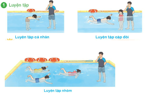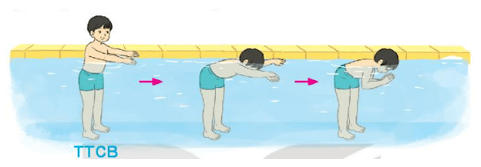 - Động tác: Hít một hơi thật sâu, gập thân chìm mặt vào trong nước, sau đó khua tay, khi gần hết hơi thì đứng lên.