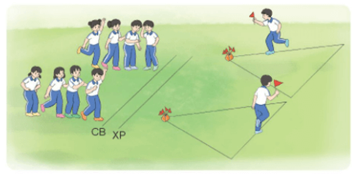 - Bước 1: Kẻ các vạch: chuẩn bị, xuất phát. Cách vạch xuất phát khoảng 1 m, vẽ hai hình tam giác giống nhau có canhj 8 – 10 m. Tại một đỉnh của tam giác để cây nấm có cắm 5 lá cờ.