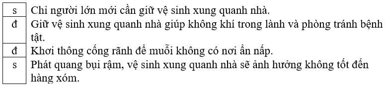 Viết chữ đ vào ô trống ở ý đúng, chữ s vào ô trống ở ý sai.