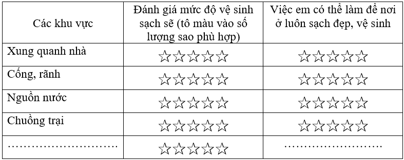 Quan sát các khu vực xung quanh nơi e mở và hoàn thành những nội dung trong bảng sau.