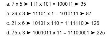 Thực hiện các phép tính nhân sau đây trong hệ nhị phân: