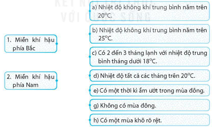Đọc thông tin SGK mục 2 trang 116-117 và ghép các ô bên trái với các ô bên phải cho phù hợp về sự phân hoá khí hậu theo chiều bắc - nam ở nước ta.