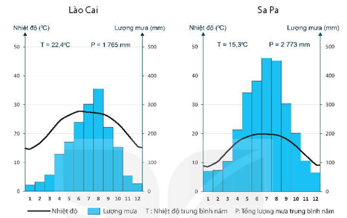 Cho hai biểu đồ nhiệt độ và lượng mưa: