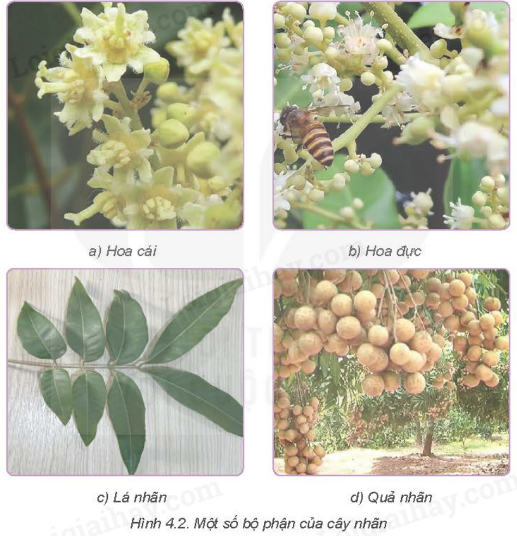 Quan sát hình 4.2 và nêu đặc điểm thực vật học của cây nhãn tương ứng với các ảnh trong hình.