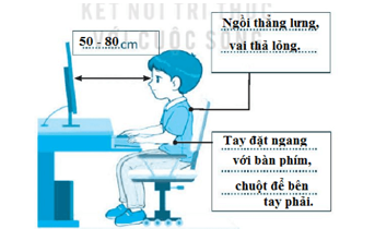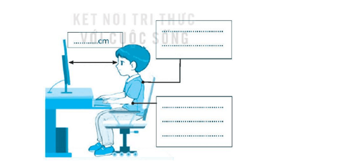 Hãy điền nội dung thích hợp vào chỗ chấm để ngồi đúng tư thế khi sử dụng máy tính.
