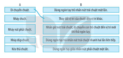 Hãy nối mỗi mục ở cột A với một mục thích hợp ở cột B (theo mẫu).