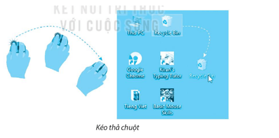 a) Để di chuyển một biểu tượng từ vị trí này sang vị trí khác trên màn hình em sử dụng thao tác ……………….