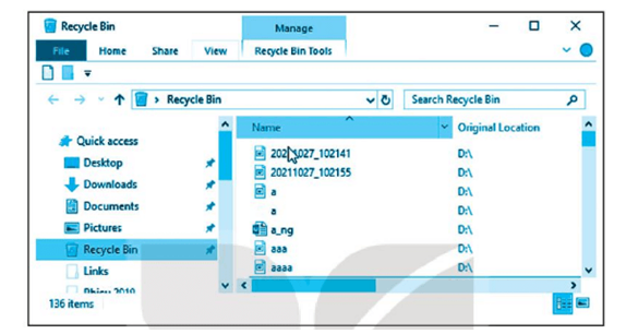 Bước 6: Nháy đúp chuột vào biểu tượng Recycle Bin trên màn hình nền. Cửa sổ Recycle Bin được mở ra tương tự hình sau: