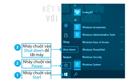 ☑ Đóng các chương trình đang mở và nháy chuột chọn Start/Power/Shut down để tắt máy tính.