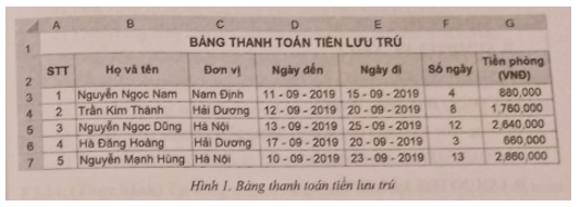 Cho bảng tổng hợp thanh toán tiền lưu trú trong Hình 1