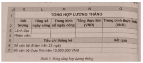 Bước 1: Tạo bảng tổng hợp lương tháng như Hình 5