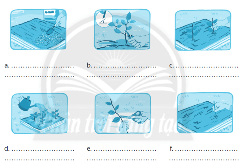Cho biết tên các công việc nhân giống cây trồng bằng phương pháp giâm cành được thể hiện trong mỗi hình dưới đây