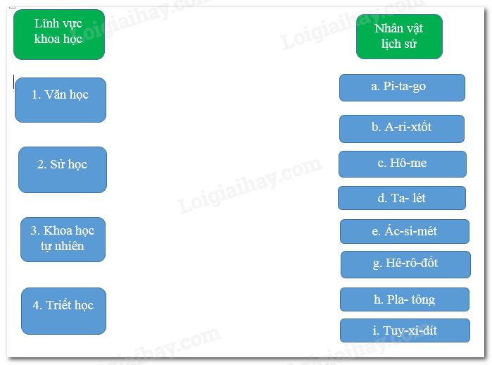 Hãy ghép nhân vật lịch sử với lĩnh vực khoa học mà họ có nhiều cống hiến.