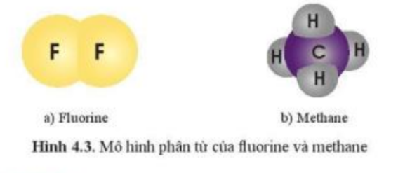 Dựa vào hình 4.3, tính khối lượng phân tử của fluorine và methane. |