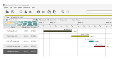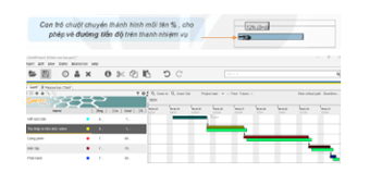 - Quan sát biểu đồ Gantt vừa chỉnh sửa các thông số hiển thị.