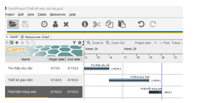 2. Cập nhập tiến độ thực tế cho các nhiệm vụ sau: Thu thập yêu cầu: 100%, Thiết kế giao diện: 100%, Phát triển trang web: 80%.
