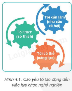 Quan sát hình 4.1 ta thấy, ba yếu tố trong hình là sở thích, nhu cầu xã hội và năng lực có ảnh hưởng trực tiếp đến quyết định lựa chọn nghề nghiệp. Khi chọn nghề, đầu tiên chúng ta phải đánh giá được bản thân (sở thích, năng lực) và xem xét nhu cầu của xã hội để lựa chọn công việc phù hợp với bản thân.