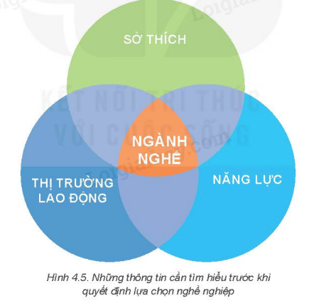 Quan sát Hình 4.5 và cho biết: Để chọn nghề, học sinh cần tìm hiểu những thông tin gì?