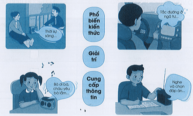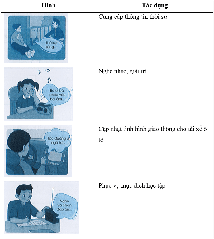 Hãy nối hình với tác dụng của máy thu thanh sao cho phù hợp.