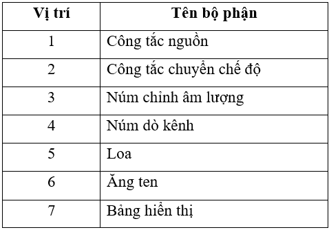 Chọn nội dung gợi ý dưới đây và điền vào chỗ …. sao cho đúng với tên bộ phận của máy thu thanh.