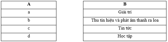 Em hãy quan sát hình ảnh dưới đây và nối các kí hiệu hình a, b, c, d ở cột A với các mô tả về tác dung tương ứng của máy thu thanh (radio) ở cột B.