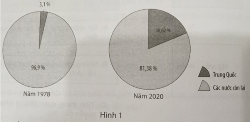 a) Tên Hình 1: Biểu đồ thể hiện tỉ lệ GDP của Trung Quốc trong nền kinh tế thế giới năm 1978 và năm 2020.