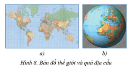 Bản đồ thế giới có thể trải phẳng ra trên một tờ giấy, có thể cuộn lại theo cách nào đó thành một quả địa cầu. Theo em, bằng cách nào để tạo ra ảnh động mà trong đó quả địa cầu này xoay quanh trục của nó?