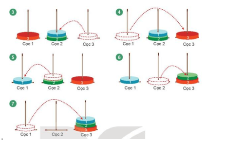 - Di chuyển 3 đĩa từ cọc 2 sang cọc 3: 7 bước