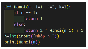 Viết chương trình rút gọn của hàm Hanoi(n, i, j, k) như sau và kiểm tra kết quả
