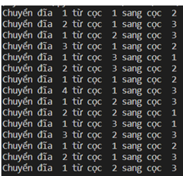 - Di chuyển 1 đĩa từ cọc 2 sang cọc 3