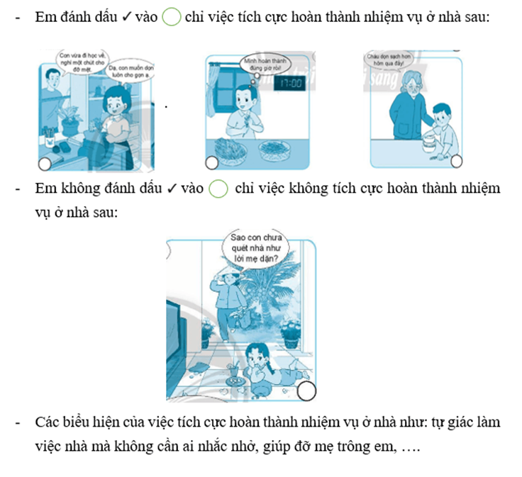 Đánh dấu vào ô tròn chỉ việc tích cực hoàn thành nhiệm vụ ở nhà.