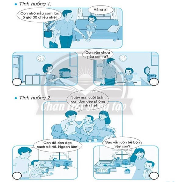 Tình huống 1: Sáng chủ nhật, Bin vừa thức giấc thì các bạn hàng xóm đã í ới rủ đi đá bóng. Bin phân vân: “Hay là lát nữa về mình sẽ gấp chăn sau”.