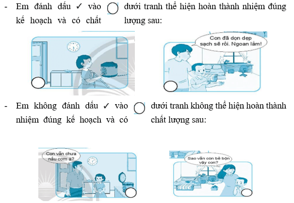 Đánh dấu vào dưới tranh thể hiện hoàn thành nhiệm đúng kế hoạch và có chất lượng.