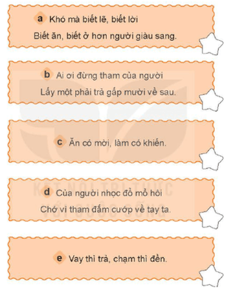 Đánh dấu vào ngôi sao ở những câu ca dao, tục ngữ nói về việc tôn trọng tài sản của người khác. Hãy nêu hiểu biết của em về một trong những câu đó.