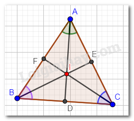 Ta có: I là giao điểm của ba đường phân giác của tam giác ABC. Đồng thời là giao điểm của ba đường trung trực tam giác ABC nên: \(ID \bot BC;IE \bot AC;IF \bot AB\).