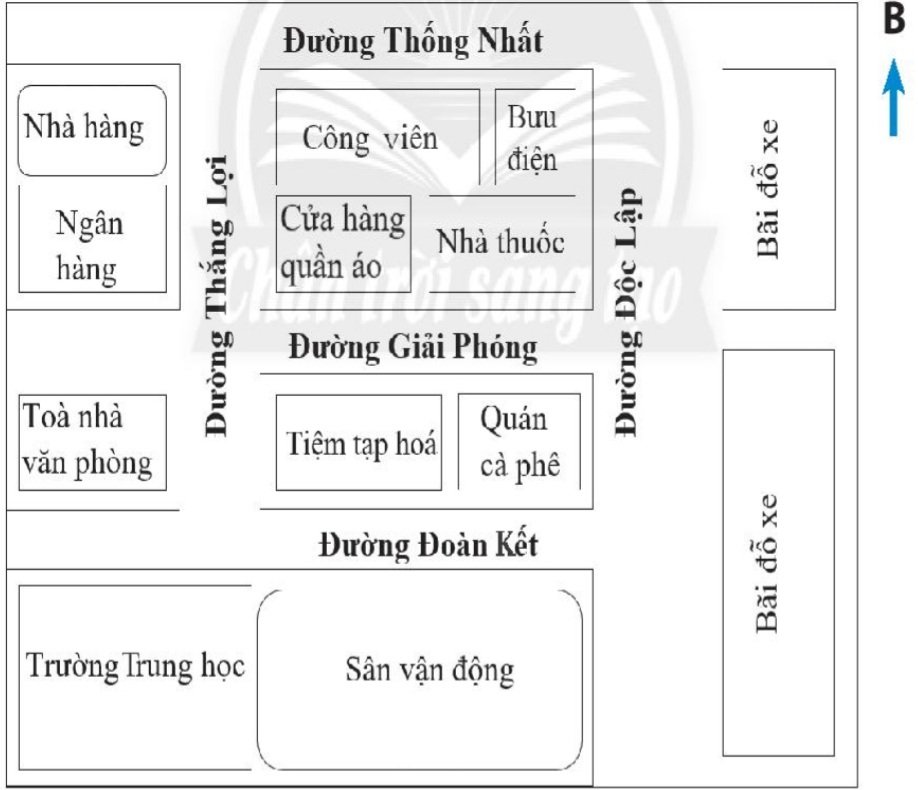 3. Con đường ngắn nhất khi ở bưu điện (đường Thống Nhất) đến quán cà phê là rẽ vào đường Độc Lập.