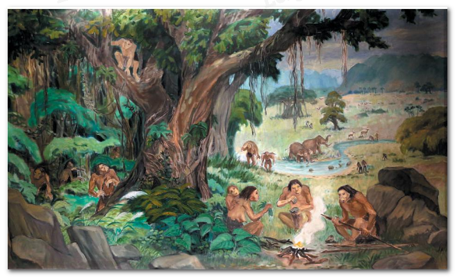 Quan sát hình ảnh dưới đây, hãy đặt các câu hỏi về những điều mà em muốn biết liên quan đến đời sống của người nguyên thuỷ (Gợi ý: Người nguyên thuỷ làm thế nào để tạo ra lửa? Họ dùng lửa để làm gì?,...).