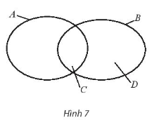Kí hiệu A là tập hợp các học sinh nữ của trường, B là tập hợp các học sinh khối 10 của trường; C, D lần lượt là tập hợp các học sinh nữ, các học sinh nam khối 10 của trường ̣̣̣( hình 7). Hãy điền kí hiệu tập hợp thích hợp vào chỗ chấm