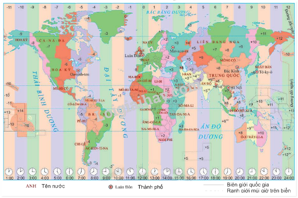 Hình 6.4. Các khu vực giờ trên Trái Đất