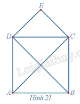 Vì đồ thị ở Hình 21 gồm có 5 đỉnh nên tổng bậc của hai đỉnh không kề nhau bất kì đều không nhỏ hơn 5. Do đó, theo định lí Ore, đồ thị này có ít nhất một chu trình Hamilton.