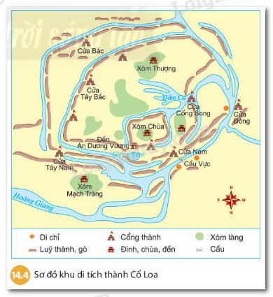 Quan sát hình 14.3 và sơ đồ 14.4 và tìm kiếm thêm tư liệu về thành Cổ Loa
