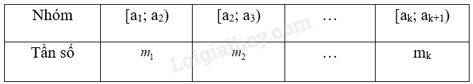 Bảng tần số ghép nhóm có dạng: