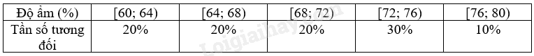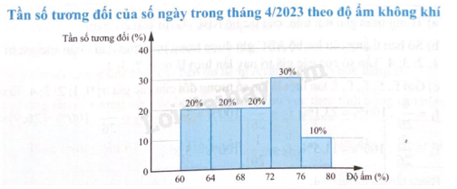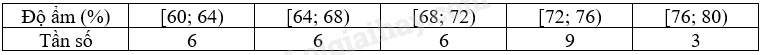 Bảng sau thống kê độ ẩm không khí lúc 12:00 tại một địa điểm trong tháng 4/2023 (đơn vị: %).