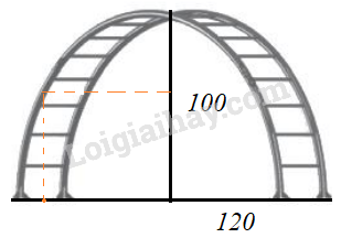 \(\frac{{{{100}^2}}}{{{{120}^2}}} + \frac{{{y^2}}}{{{{100}^2}}} = 1 \Rightarrow {y^2} = {100^2}\left( {1 - \frac{{{{100}^2}}}{{{{120}^2}}}} \right) \Rightarrow y \approx 55\left( {cm} \right)\)