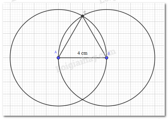- Lấy A, B làm tâm, vẽ hai đường tròn bán kính 4 cm.
