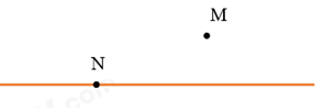 c) Sử dụng các kí hiệu \( \in , \notin \) để viết các mô tả sau: “ Điểm N thuộc đường thẳng b; điểm M không thuộc đường thẳng b”.